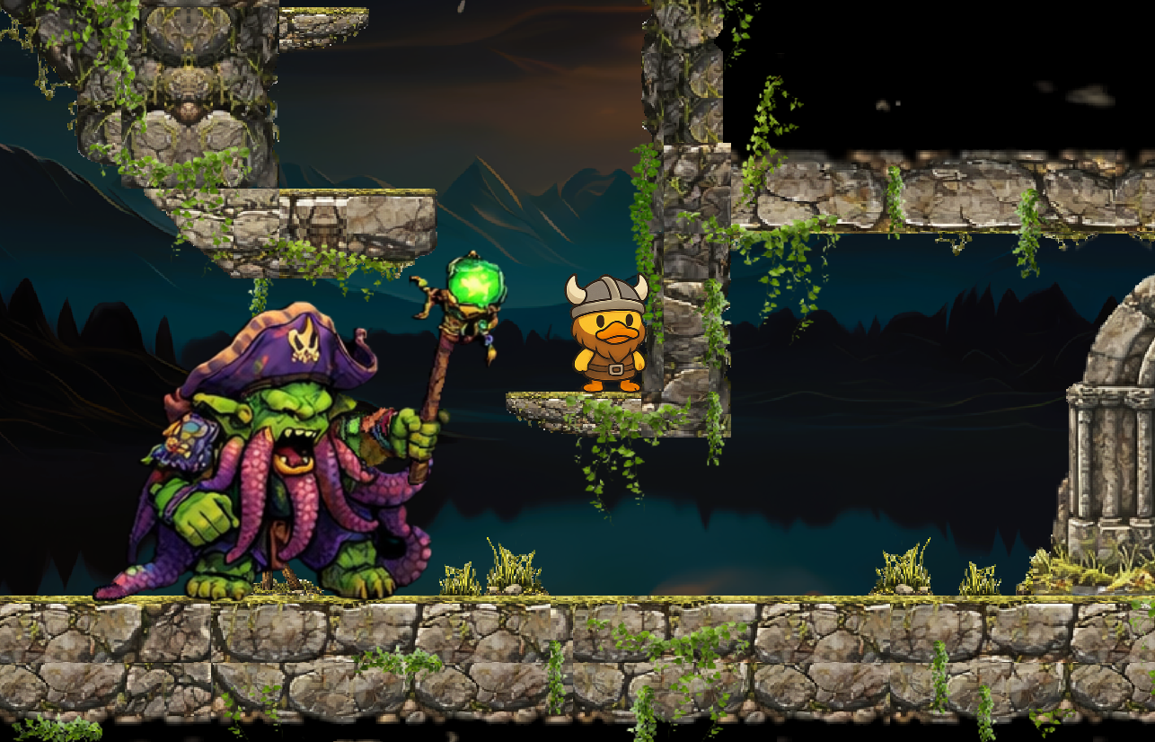 Cast into an unfamiliar realm, the Viking Kwack Clan warrior rises to his feet.